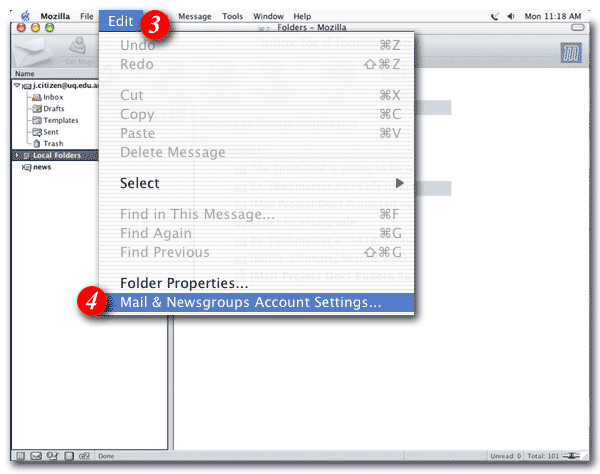 This guide assumes your e-mail account is already setup and working in Mozilla Mail. If you have not already setup your account please click here for the POP3 and IMAP guides.
